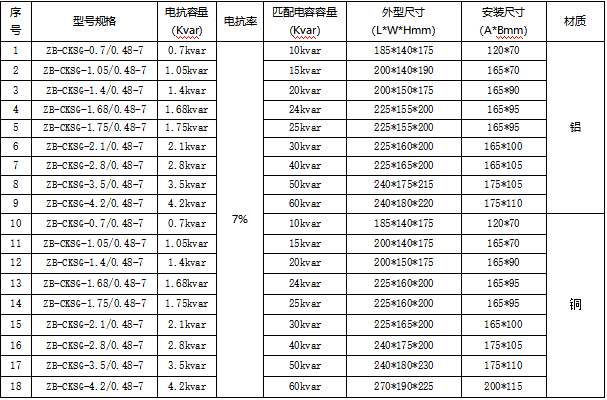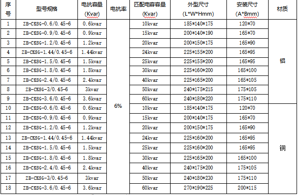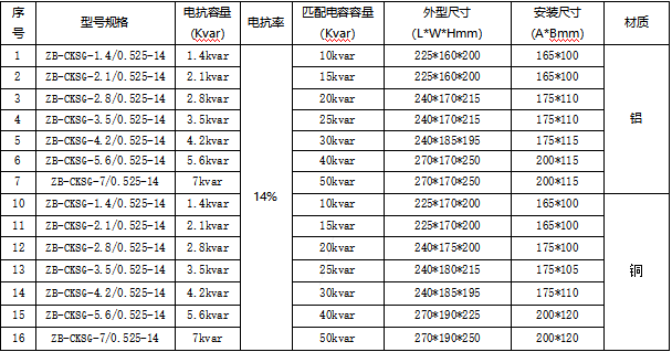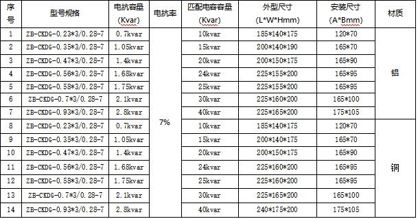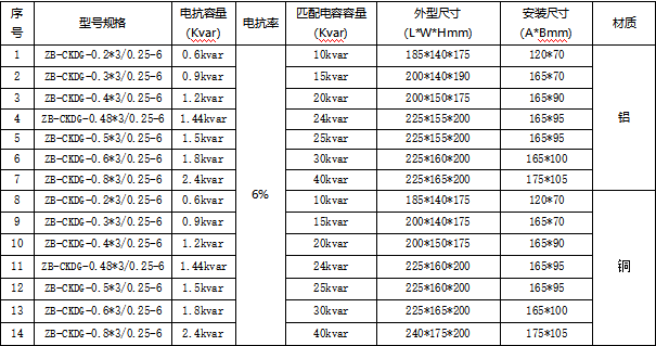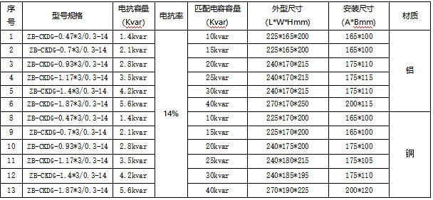 2、電抗率的種類:6%、7%、13%、14%(其他電抗率請聯(lián)系我司);