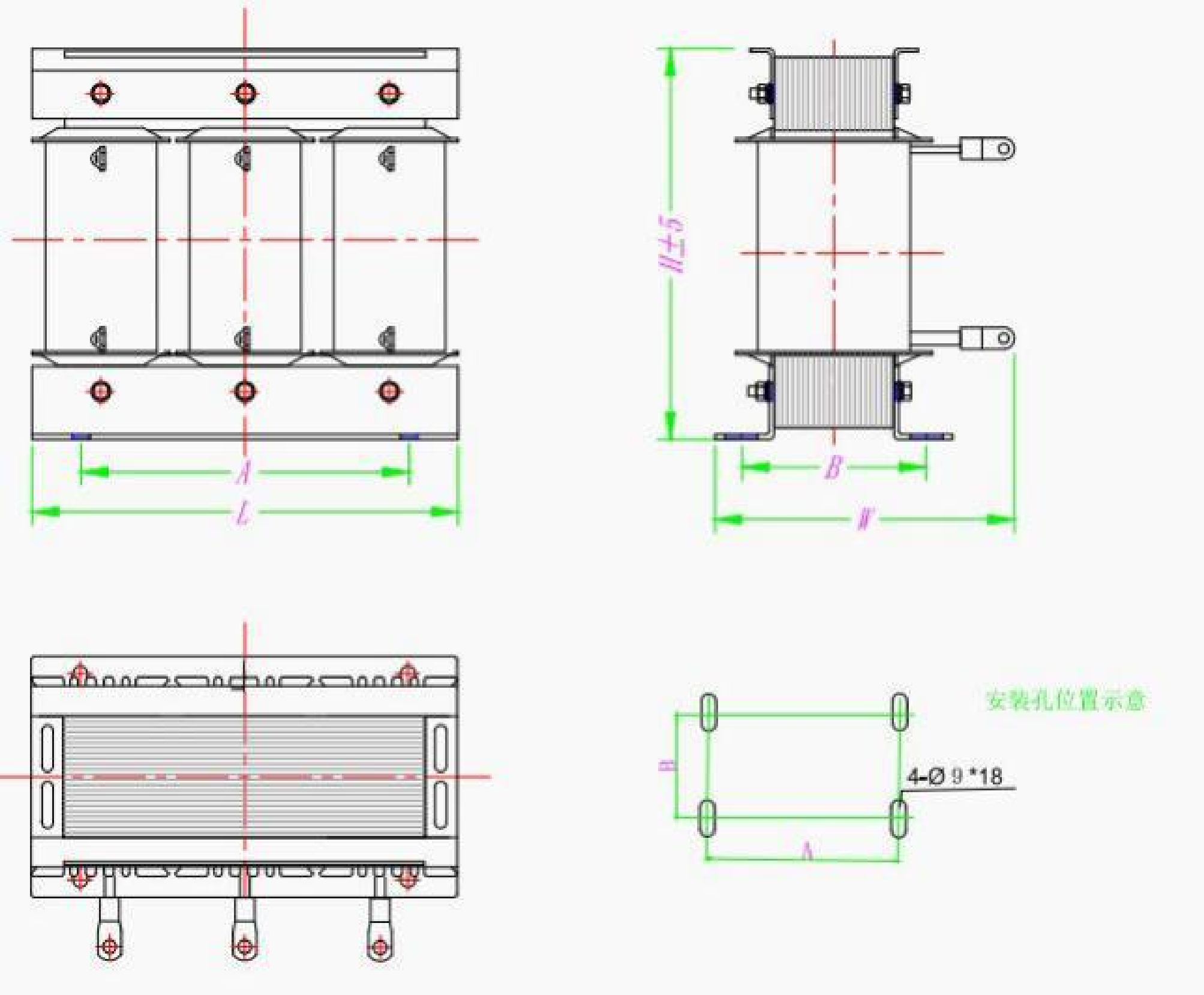 1、該電抗器分為三相和單相兩種,均為鐵心干式;